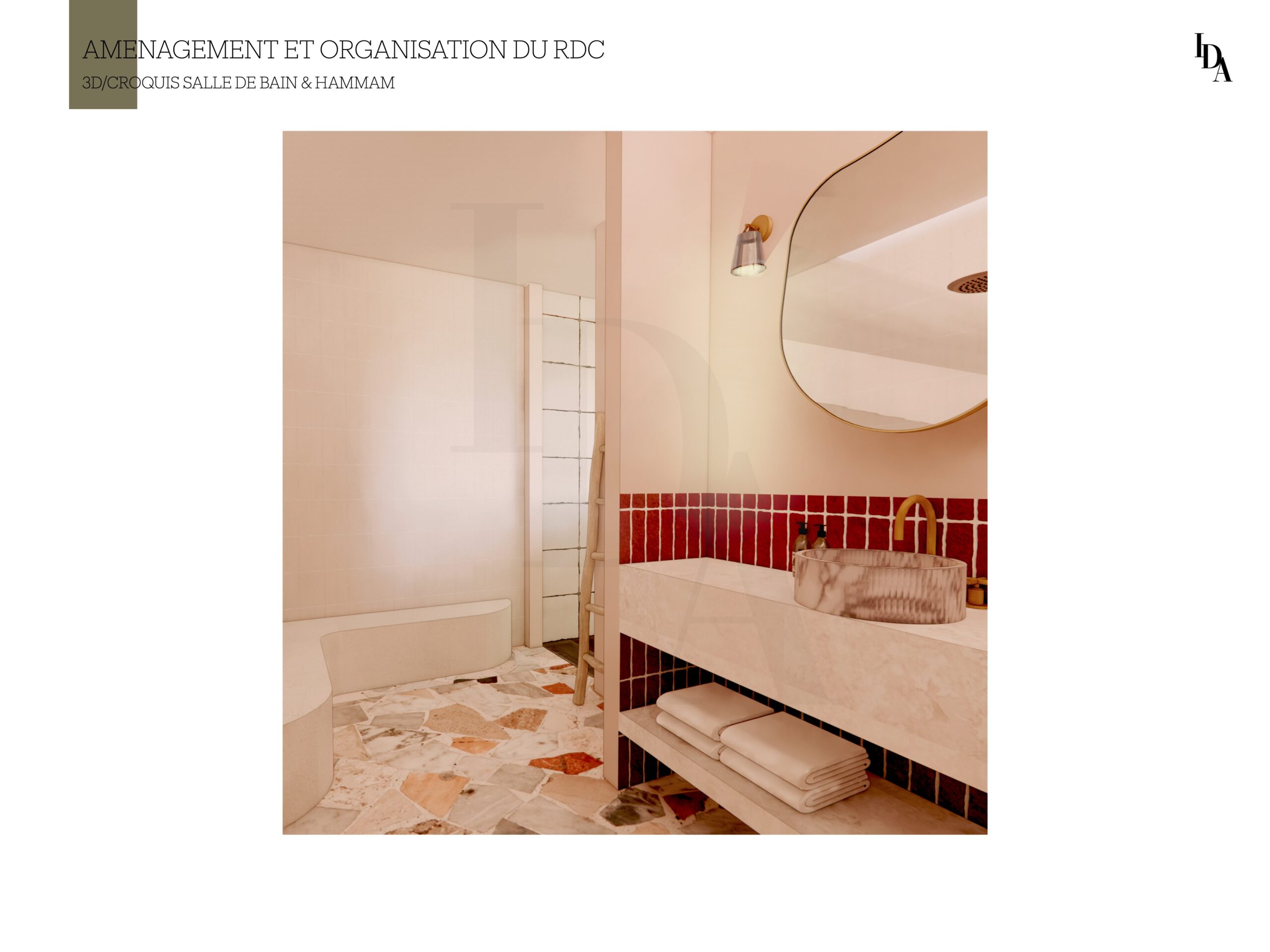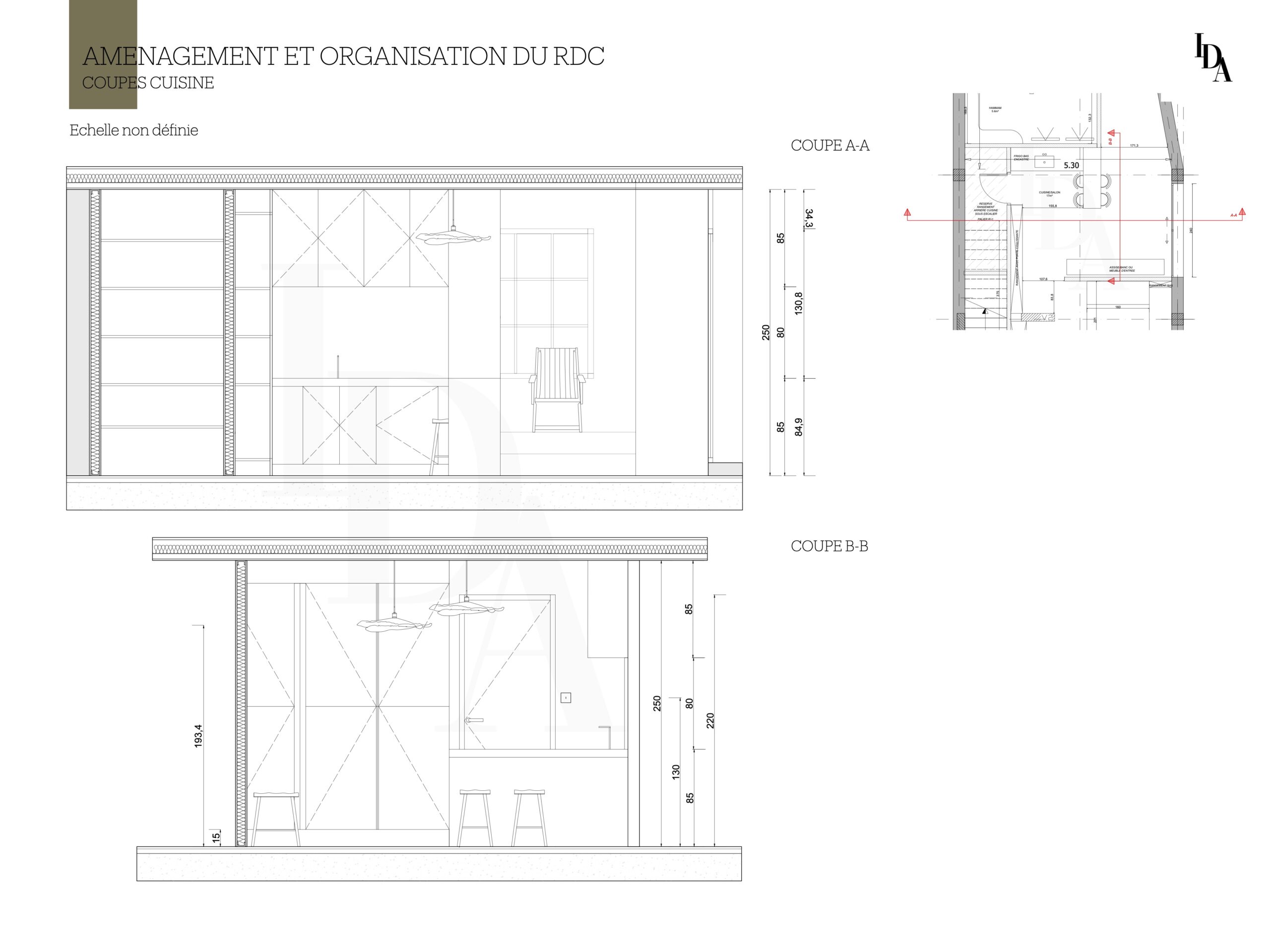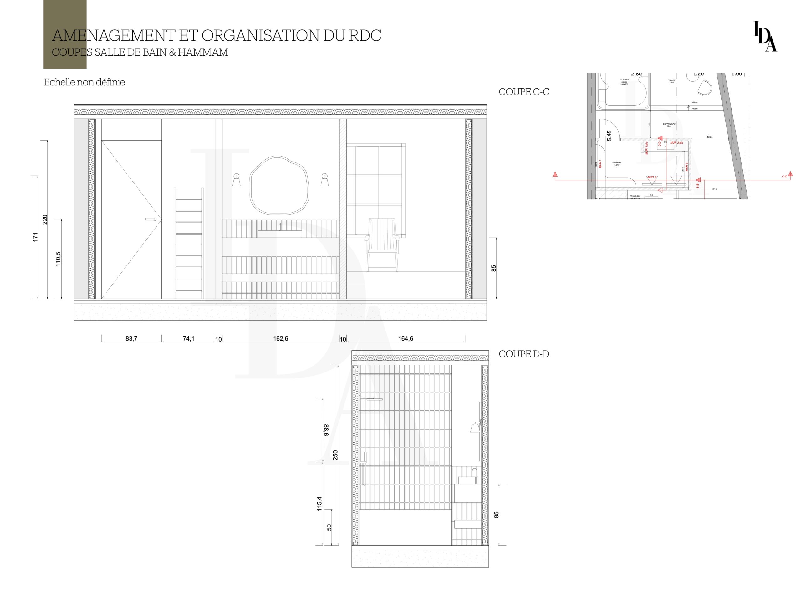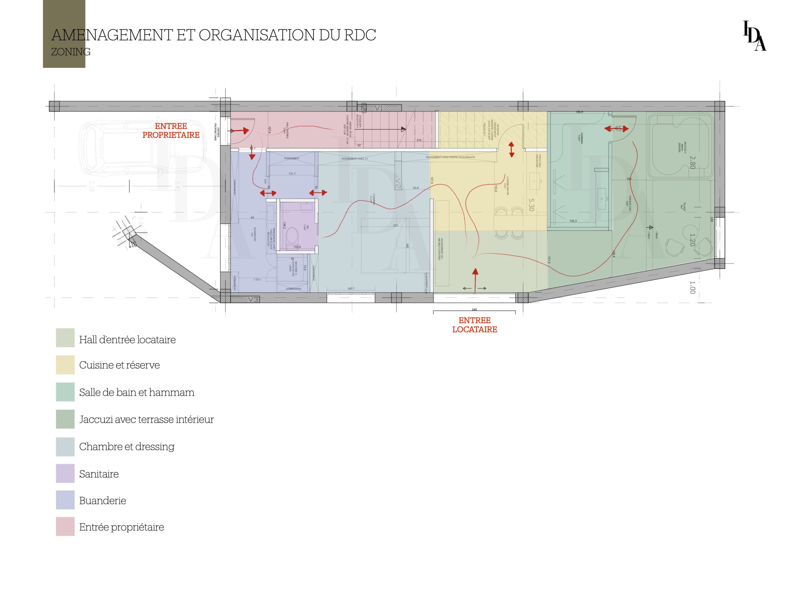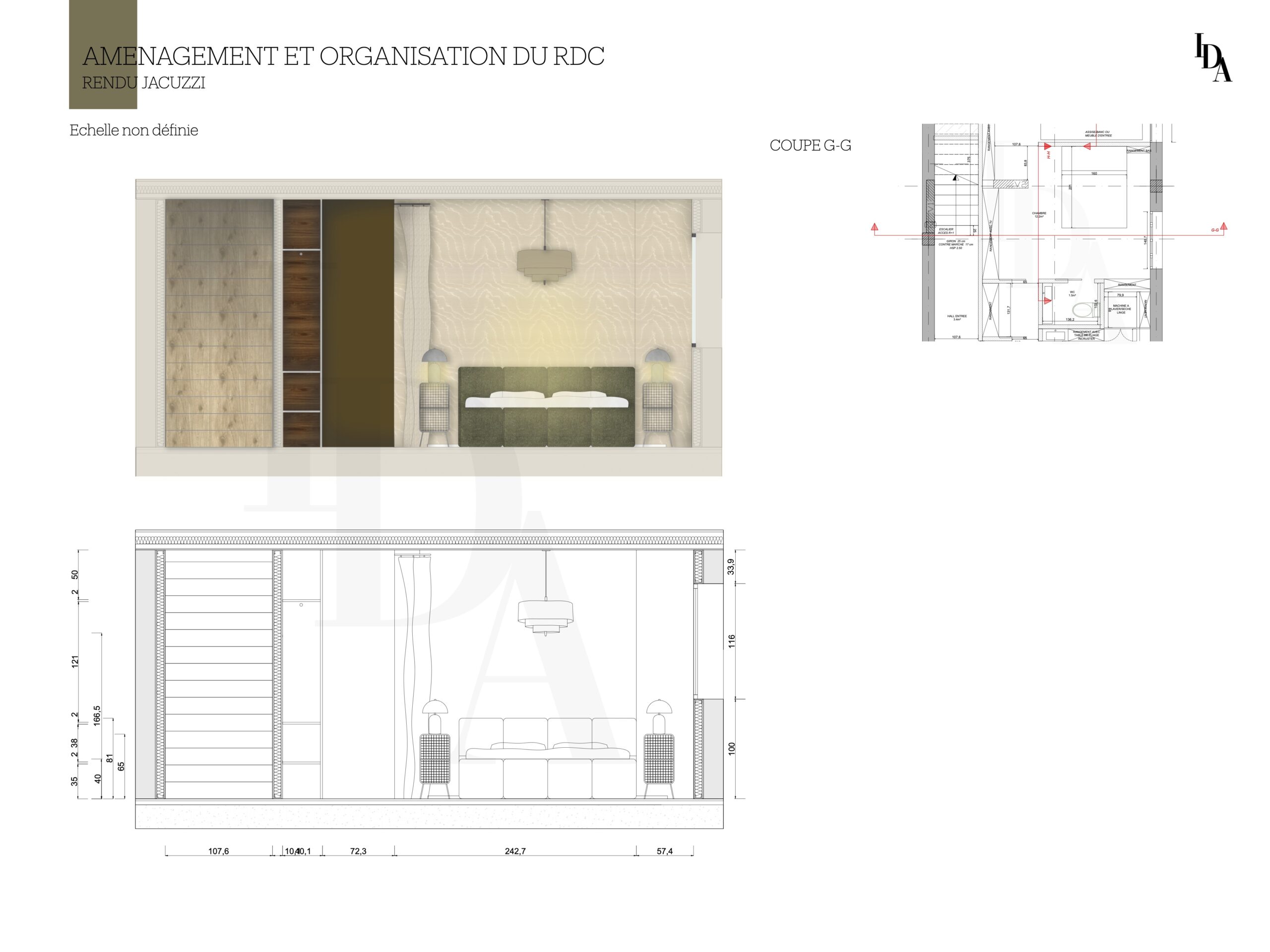 Voici mon travail sur cette maison, dont l’objectif principal était de réaménager l’intérieur avant la phase de construction. La demande du client portait sur l’aménagement du rez-de-chaussée en un espace destiné à la location, tout en intégrant une buanderie facilement accessible.
