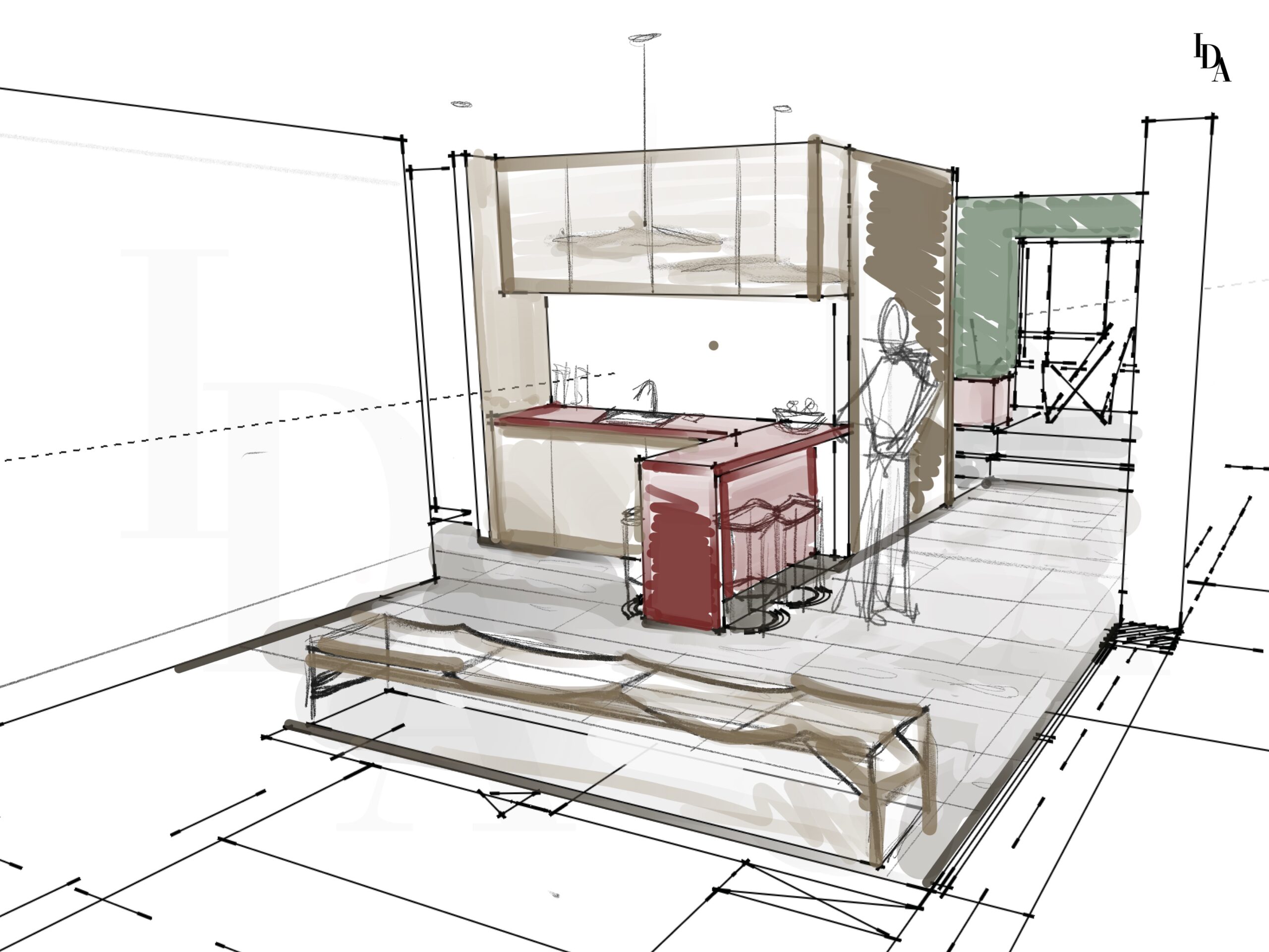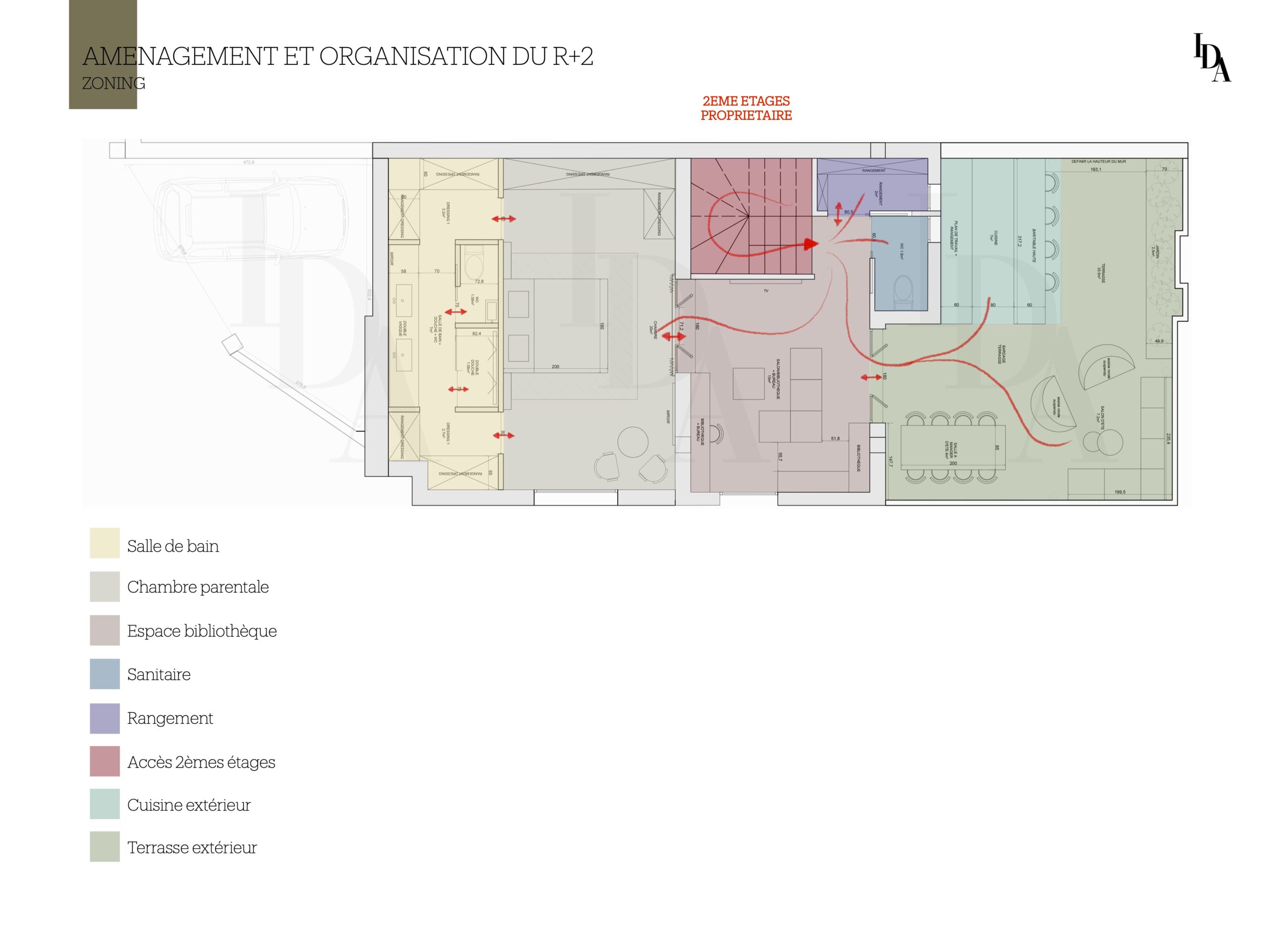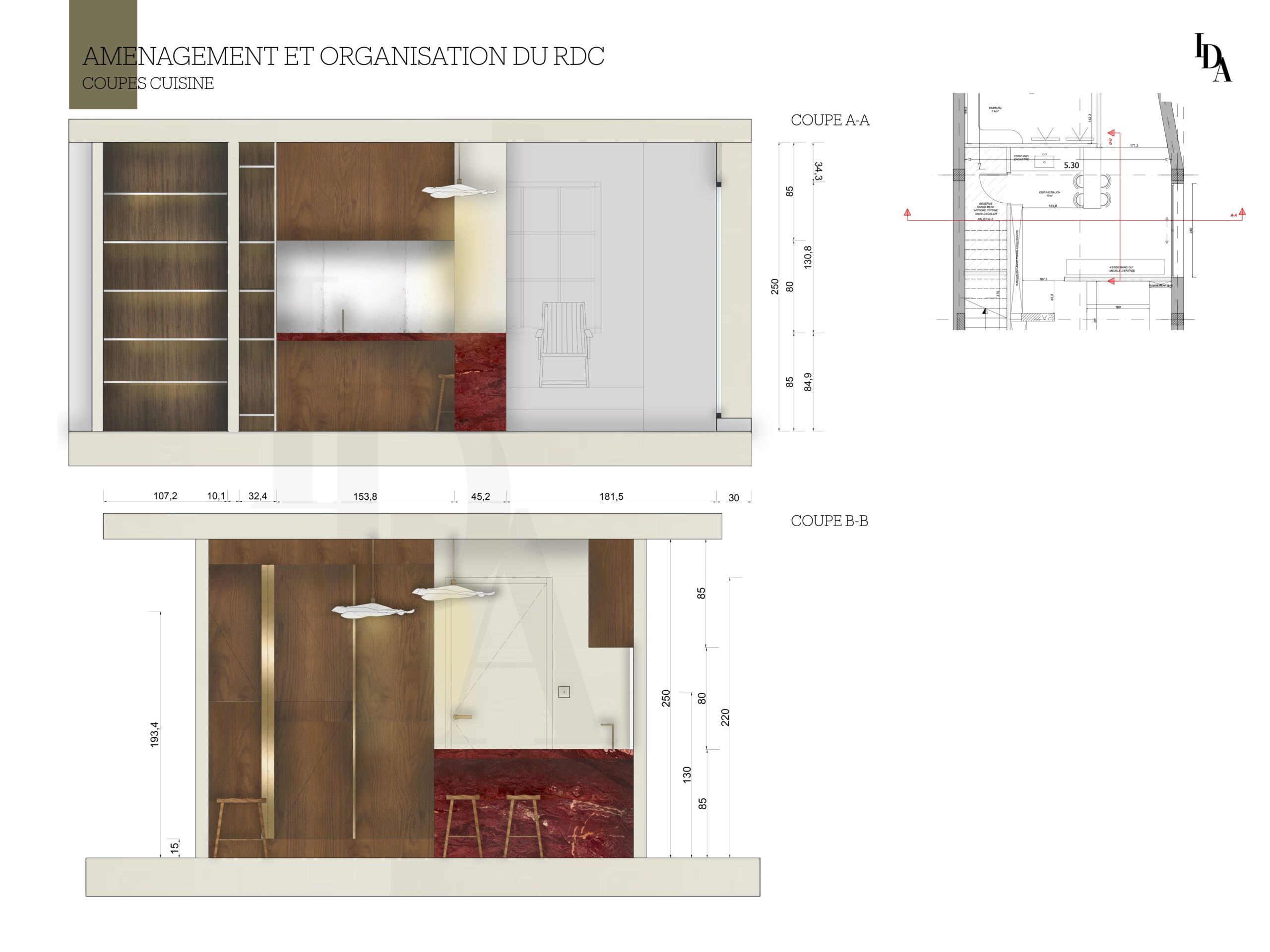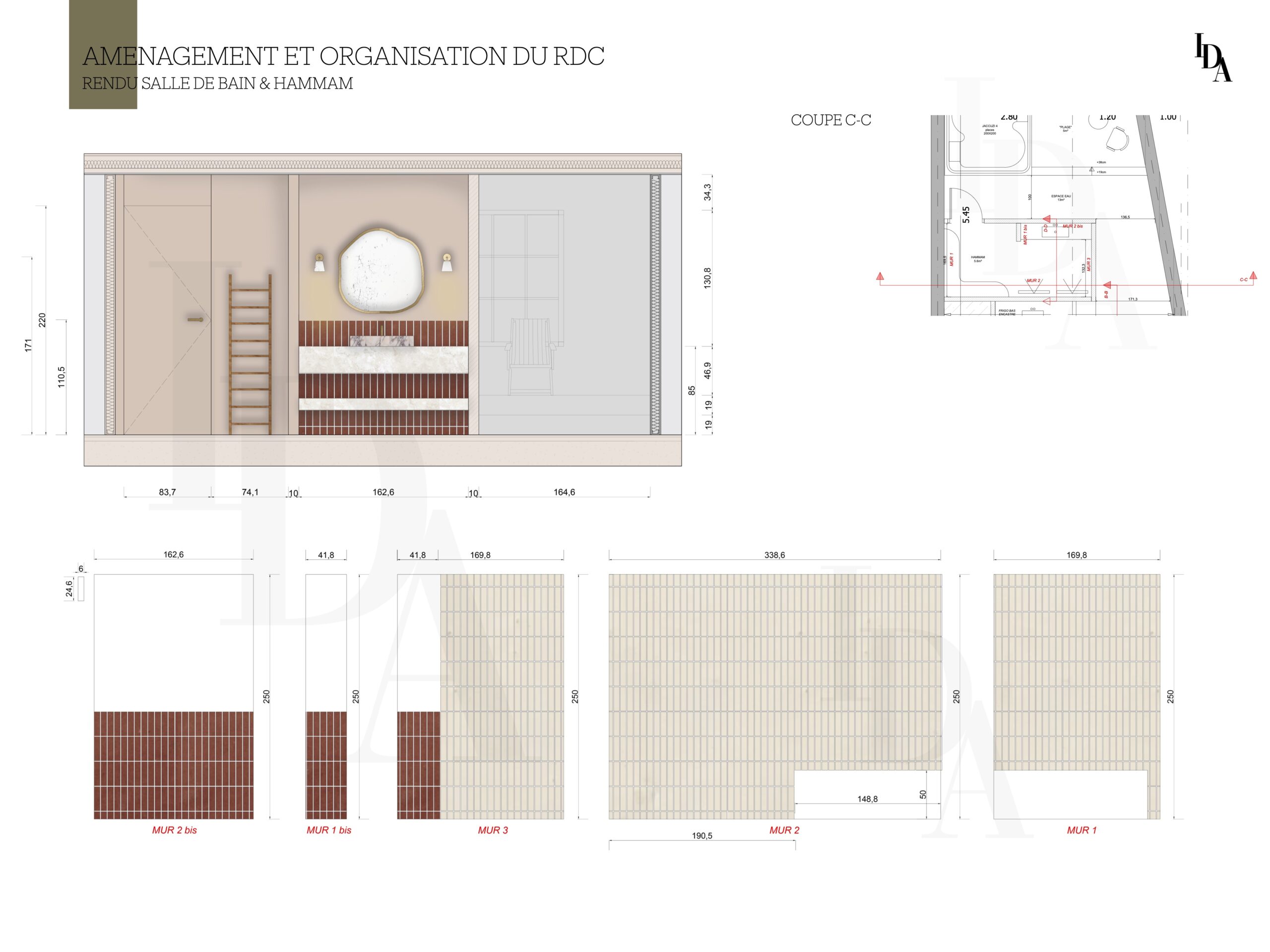 Voici mon travail sur cette maison, dont l’objectif principal était de réaménager l’intérieur avant la phase de construction. La demande du client portait sur l’aménagement du rez-de-chaussée en un espace destiné à la location, tout en intégrant une buanderie facilement accessible.